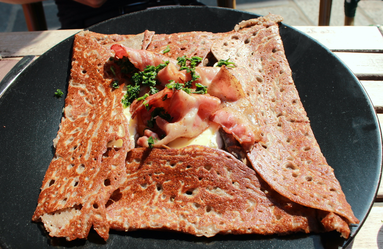 ガレットはハムや卵、エメンタールチーズを乗せた塩味のクレープです。