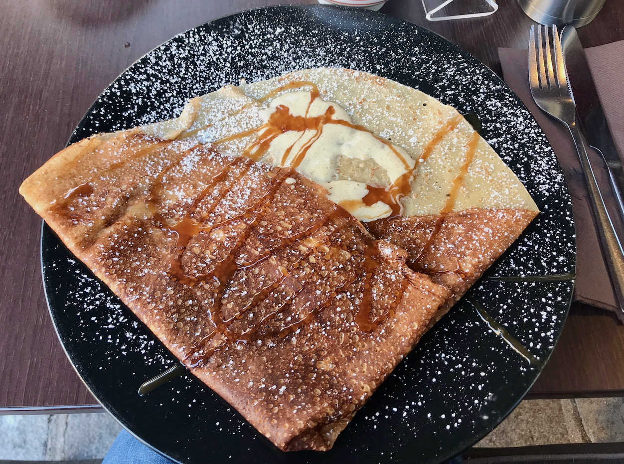 小麦粉でできたクレープは、同じくハムや卵、エメンタールチーズを乗せて塩味で食べることもできますし、ヌテラや蜂蜜をかけてデザートとして食べることもできます。