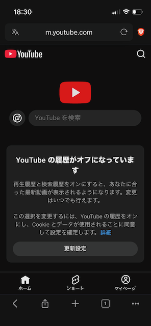 Youtubeで時間を無駄にしたくないという人におすすめなのですが、スマホでYoutubeを見る時、Cookieを「全て拒否」にすると、Youtubeを開いたときになんのおすすめも出てきません。